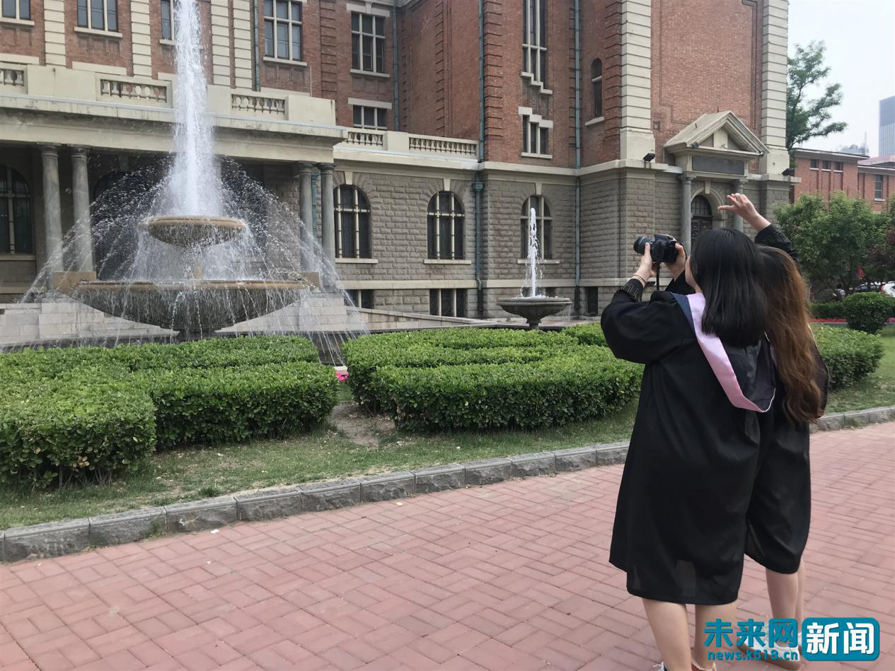 大学毕业生在拍照留念。(未来网记者 谢青摄)