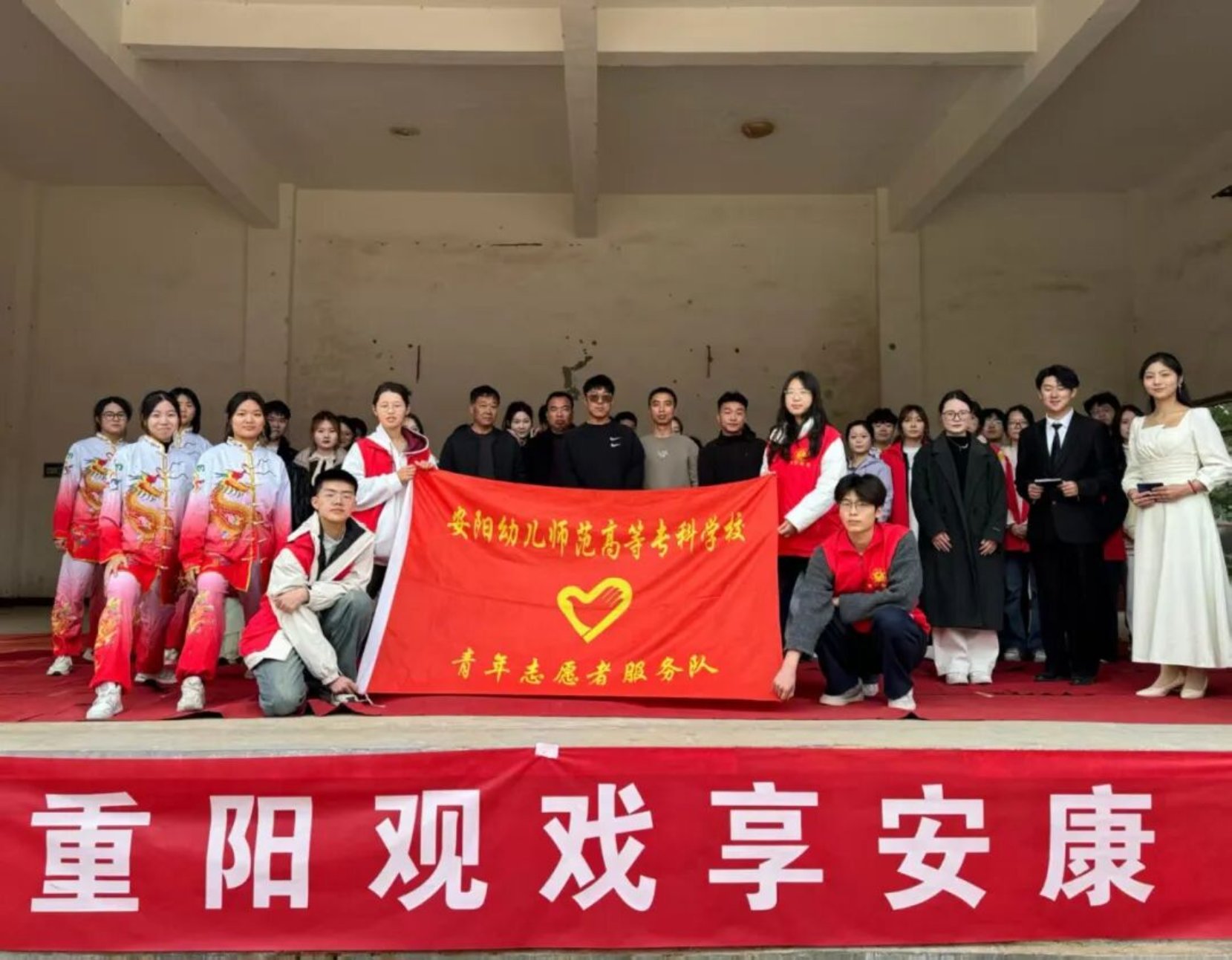 今年10月份,安阳幼儿师范高等专科学校学前教育学院团委与汤阴县菜园镇团委建立了结对共治关系。重阳节前夕,菜园镇有意在李尧会村举行敬老节活动,于是向安阳幼专学前教育学院团委提出了“点单”需求,安阳幼专学前教育学院迅速“接单”,积极响应,并于10月28日参与到志愿服务活动中。学生们为老人编排了精彩的节目,不仅展现了安阳幼师学子扎实的专业功底,更将青年一代的朝气与尊老敬老的深情完美融合,赢得了台下阵阵掌声与欢笑。