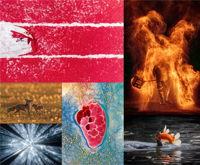 铜奖作品的《火红茱萸喜丰收》、《大地之心》、《母爱无声》、《鸬鹚吃红鱼》等,则从不同维度展现了生活的细微之处。无论是深沉温馨的亲情,还是聚焦自然地貌的宏大美学,亦或是生态互动中的生动一瞥,都体现了创作者对生活的细致观察与独特见解。