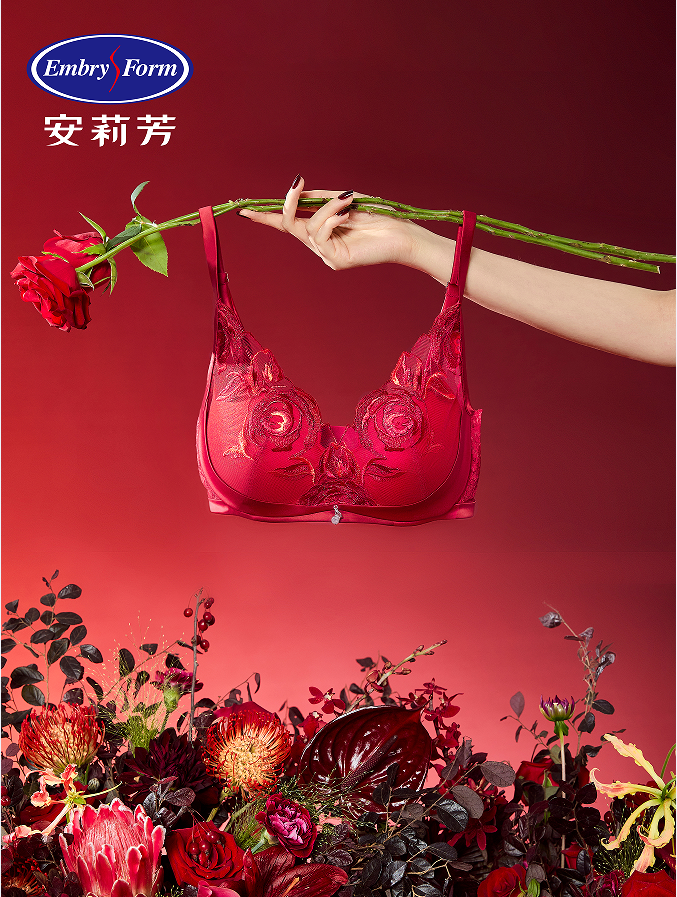 优雅代言人宋轶同款“爱意”系列,强调女性“悦己”概念,将热烈而纯粹的“爱意红”作为能量底色,寓意点燃内在活力。宋轶以其优雅与独立并存的现代女性形象,邀请每一位女性“和宋轶一起,穿红旺自己”。该系列「玫瑰舒挺杯」文胸,以畅销专利杯型带来“挺舒服挺有型”的穿着体验。杯里选用珍贵的6A级桑蚕丝,天然滋养肌肤,尽显健康奢华。杯面点缀精致立体玫瑰刺绣,彰显艺术美感与浪漫情怀。