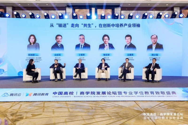 圆桌论坛——以“从‘输送’走向‘共生’,在创新中培养产业领袖”为主题,由《中国经营报》副总编辑、《商学院》杂志主编/出品人、中经传媒智库负责人屈丽丽 主持,南开大学商学院院长白长虹、山东大学管理学院院长丁荣贵、暨南大学管理学院院长黎文靖、兰州大学管理学院院长王康周、对外经济贸易大学国际商学院院长邢小强, 围绕商科教育创新、技术赋能与产业协同,分享了各自在相关领域的最新探索与思考。