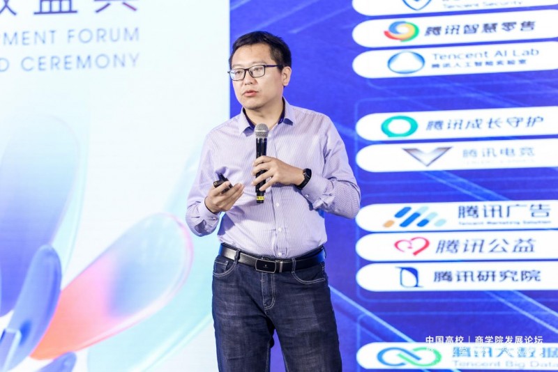 北京航空航天大学经济管理学院党委书记郑海涛 发表了题为“高质量案例建设如何赋能中国特色的商科发展”的主题报告;腾讯教育解决方案副总经理姚士佳 发表了题为“腾讯教育在AI新时代下的创新实践”的主题报告。