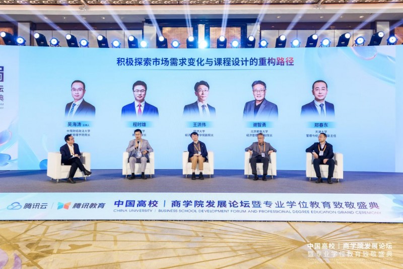 圆桌论坛——以“积极探索市场需求变化与课程设计的重构路径”为主题,由中南财经政法大学工商管理学院院长吴海涛 主持,湖北大学商学院院长程时雄、同济大学经济与管理学院副院长王洪伟、北京邮电大学经济管理学院副院长谢智勇、天津大学管理与经济学部副主任郑春东 展开深入探讨并分享了各自的见解。