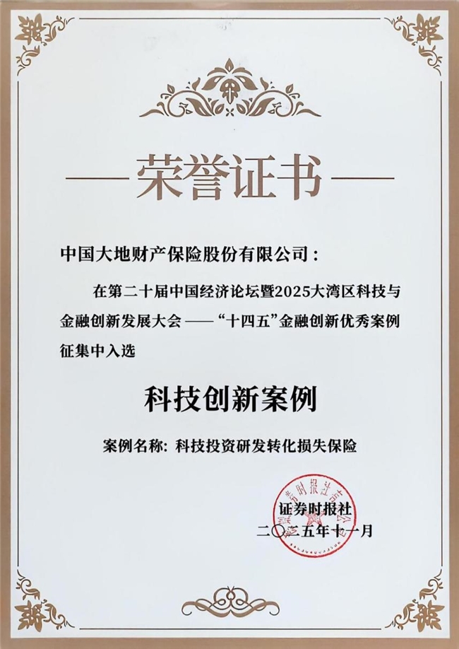 11月18日,第二十届中国经济论坛平行论坛——2025大湾区科技与金融创新发展大会在广州南沙举行。大会发布了《“十四五”金融创新优秀案例报告》,遴选出95个标杆性金融创新案例,展示了“十四五”科技金融的发展成果。中国大地保险“科技投资研发转化损失保险”成功入选“十四五”金融创新优秀科技 创新案例 ,该产品凭借创新的风险分散机制和精准的金融服务对接,为科技成果转化提供了保险解决方案。
