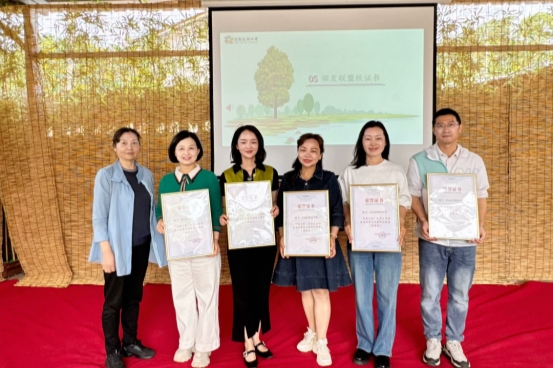 ▲青园友谊小学为“益+劳动教育”联盟校颁发证书