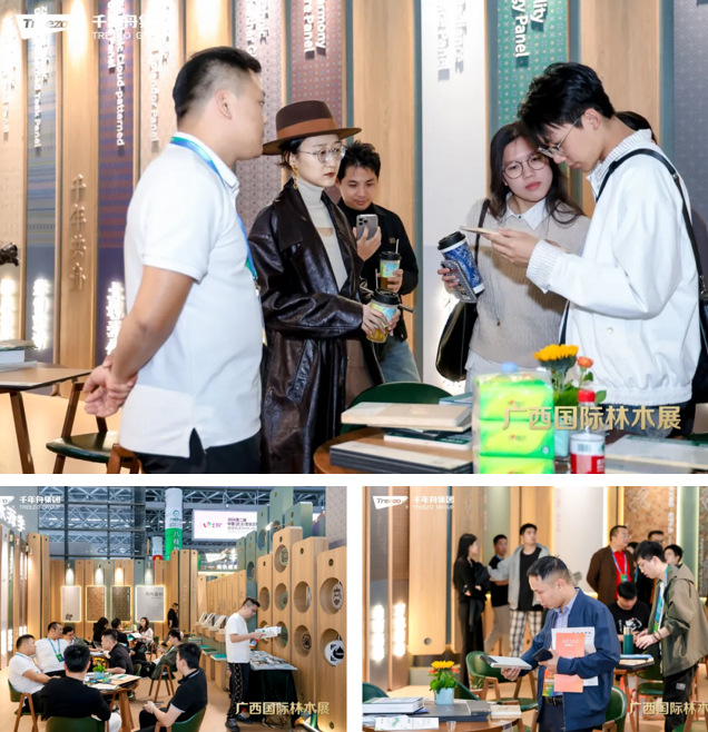 展会期间,千年舟展位人气爆棚,观众络绎不绝。来自国内外的采购商、设计师、地产商及行业媒体驻足细观,对“齐风鲁韵”系列的花色设计、质感触感及环保性能给予了高度评价。许多观众表示,该系列不仅刷新了他们对板材美学的认知,让参会者在沉浸式体验中感受千年舟的品牌温度与文化自信,更看到了中国木业将文化传承与产业创新相结合的无限可能。