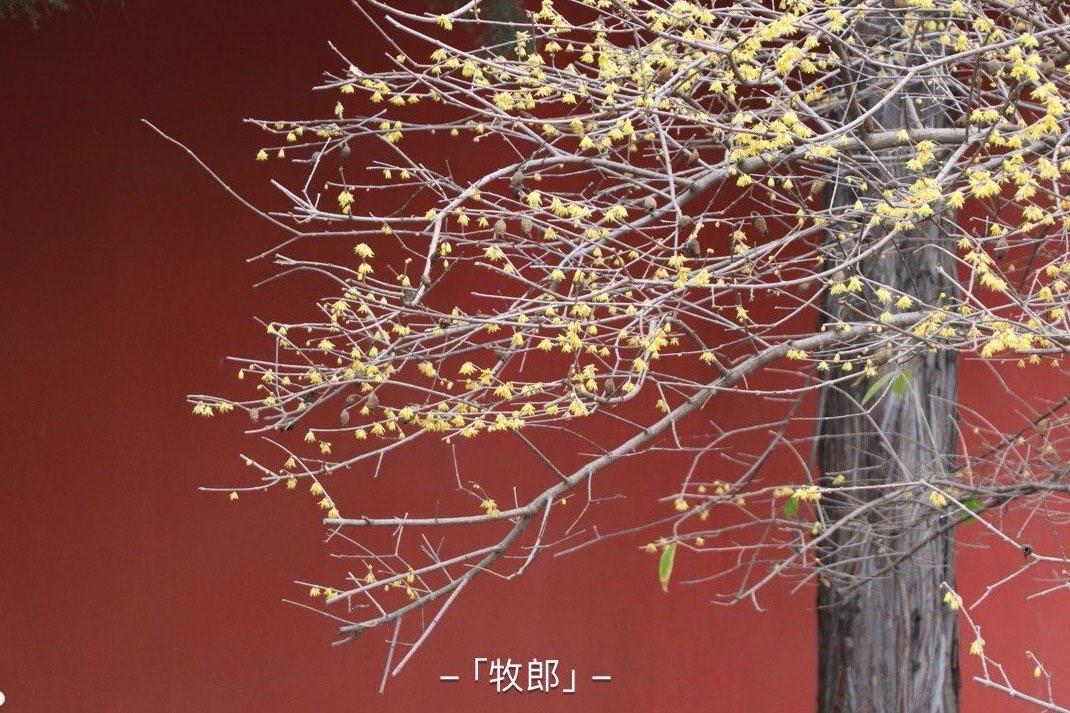 寒冷天气下的人文地标:西安墨友的“大雁塔腊梅”让人直呼“绝了”:红色的墙壁映着一角将开未开的腊梅,唐风华韵拉满。