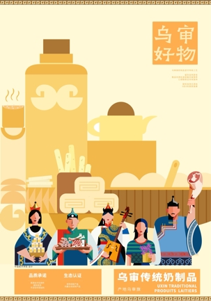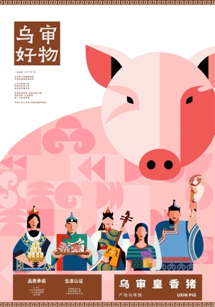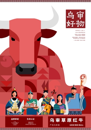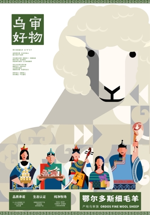 除了影像创作,同学们还为“乌审好物”赋予了全新形象。鄂尔多斯细毛羊、皇香猪、草原红牛等特色农产品,在中国美术学院团队的设计下,披上了时尚的“新衣”。肉质细腻的鄂尔多斯细毛羊被誉为“草原白月光”,喝山泉水长大的皇香猪成为“猪中贵族”,肌肉线条优美的草原红牛堪称“健身达人”,传统奶制品则被赋予了“可食用非遗”的美誉。