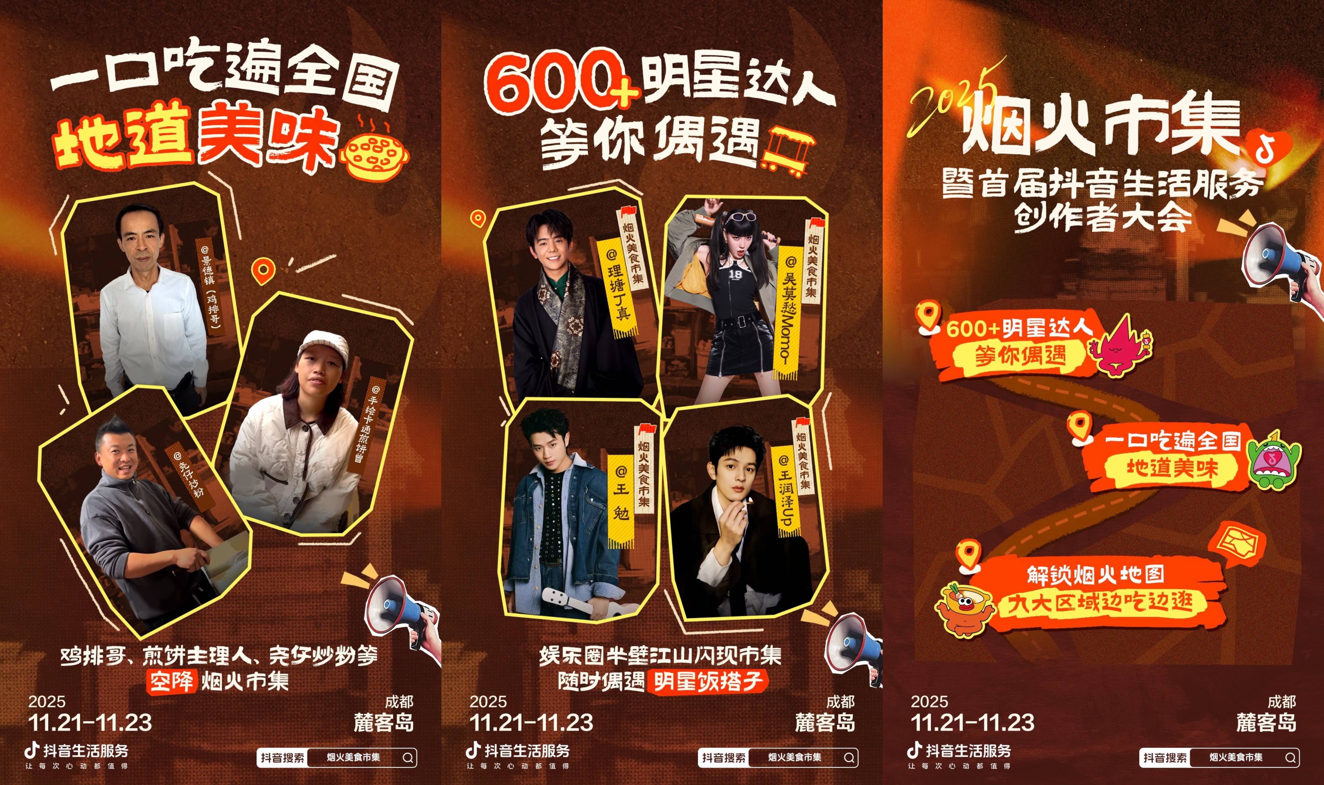 基于这份对烟火气的集体追寻,抖音生活服务以「打造一场抖音生活服务自己的年度盛会——全国烟火小店标杆事件」为目标,11月21日至23日在成都天府新区成功举办了抖音生活服务2025烟火市集暨首届抖音生活服务创作者大会。 全国美食“排队王”限时集结、600多位明星达人空降助阵,三天两夜不间断的打卡、互动与美味碰撞,不仅凝聚了成都最地道的烟火气,更点燃了整座城市的冬日消费活力。