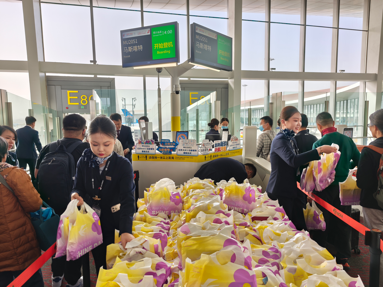 2025年11月30日14:16,东航MU2051航班从北京大兴国际机场起飞,飞往阿曼苏丹国首都马斯喀特。作为东航“北京大兴—马斯喀特”航线的首航航班,此次开航搭载270名旅客,客座率突破90%。