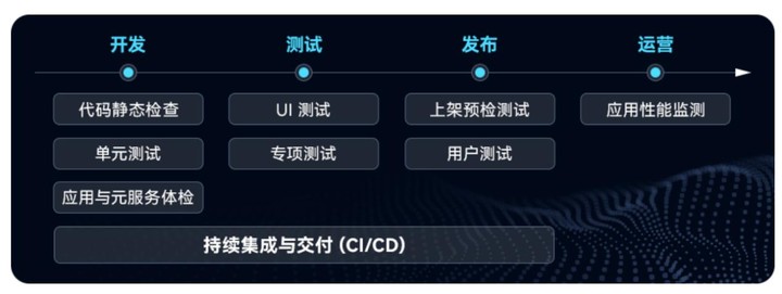 在应用上线前,构建坚实的质量防线是成功的关键。HarmonyOS还提供了系统化的“测试服务旅程”,为开发者打造了从代码开发到上架运营的全流程质量保障体系,全面覆盖单元测试、UI测试、专项测试、用户测试及性能监测等关键环节。