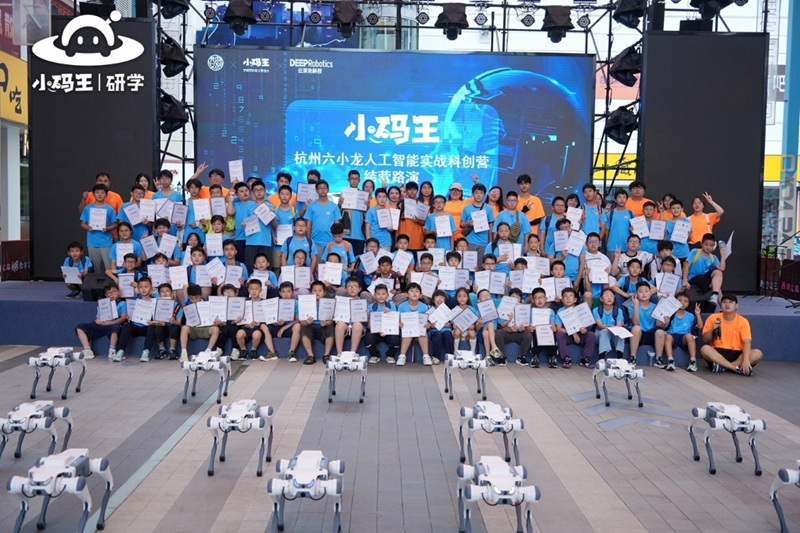此次入选,正是对小码王长期深耕人工智能教育、持续推动课程与产品创新实践的生动印证。近年来,小码王积极推动AI与教育的深度融合,不仅在课程设计上注重实践与创造,更在整体研发体系中系统布局:一方面,与浙江大学人工智能研究所、浙江大学计算社会科学研究中心开展深度合作,共同研发并发布了面向中小学的人工智能教育产品体系,全面赋能学生的AI知识建构、开发应用与创新思维;另一方面,自主打造了如“杭州六小龙”人工智能科创营等特色项目,以行业级四足机器人为教具,围绕救援、导盲、刑侦等真实场景设计AI实战任务,引导学生完成从语音识别到图像建模的完整项目开发,实现了从知识学习到能力转化的闭环。