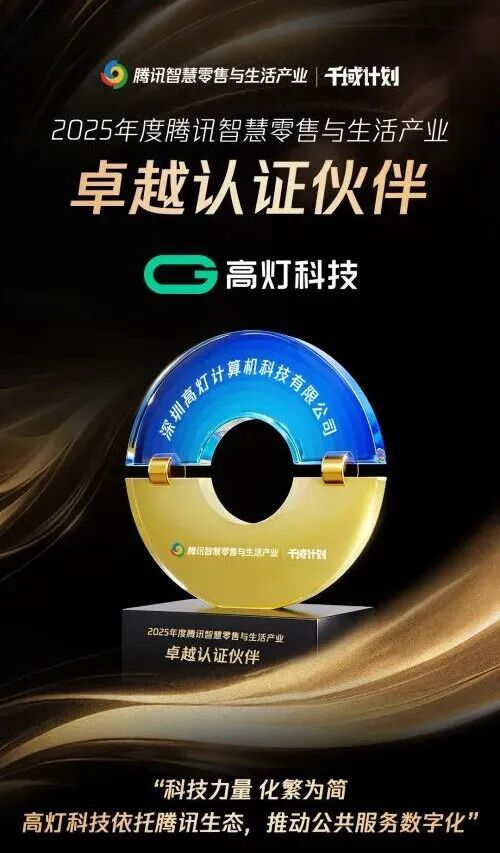 自2017年创立以来,高灯科技始终坚守 “科技赋能公共服务数字化” 初心,依托腾讯开放生态与微信场景优势,构建起 “政府信任背书 + 腾讯生态驱动 + 产业场景渗透” 的铁三角模式。此次荣誉加身,既是腾讯对其八年深耕产业互联网、持续创新突破的权威认可,更彰显了其作为民生数字化赋能先锋,在打破行业边界、推动零售生态与公共服务跨领域协同中的标杆价值——成为腾讯生态中串联商业价值与社会价值的关键枢纽,每一次合作都精准破解行业发展的“痛点”与用户体验里的“堵点”。
