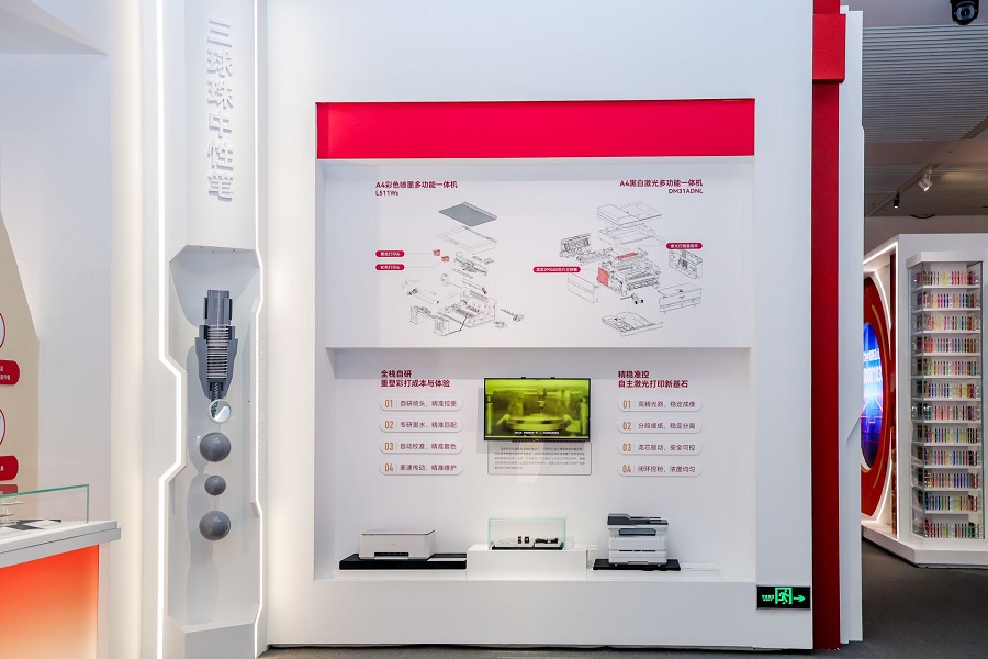 经过十年攻坚,得力已成为中国首家同时掌握激光、喷墨、热敏和针式打印核心技术,且唯一拥有打印全品类产品矩阵的企业,实现从核心部件到整机系统的自研自产,为用户提供安全可靠的国产化打印解决方案。本次展览中,得力重点呈现了喷墨与激光两大技术成果。在喷墨打印领域,得力实现喷墨打印头自主研发,喷头采用 MEMS 工艺制造,融合光刻、刻蚀、薄膜等数十道工艺,实现 1200×1200dpi 高精度输出,填补国产厂商在喷墨核心部件领域的空白,推进国产打印产业进程。在激光打印领域,得力实现激光打印引擎国产化。基于龙芯国产主控芯片,实现 LSU 激光扫描组件、主控板及引擎结构的全栈自研自产,并通过国产系统与固件的深度适配,为国产打印设备注入自主可控基因。