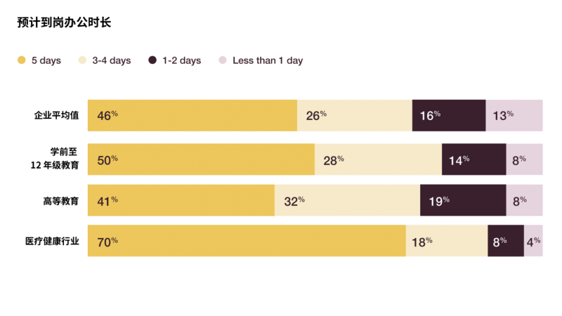 随着混合办公模式趋于稳定,企业对未来规划的思路愈发清晰、信心也日益增强。预计近半数员工将全职返岗办公,且始终有70%的员工每周至少到岗3天。基于这一现状,企业管理者如今可在办公空间设计、企业文化建设及协作模式优化等方面,做出更具依据的决策。