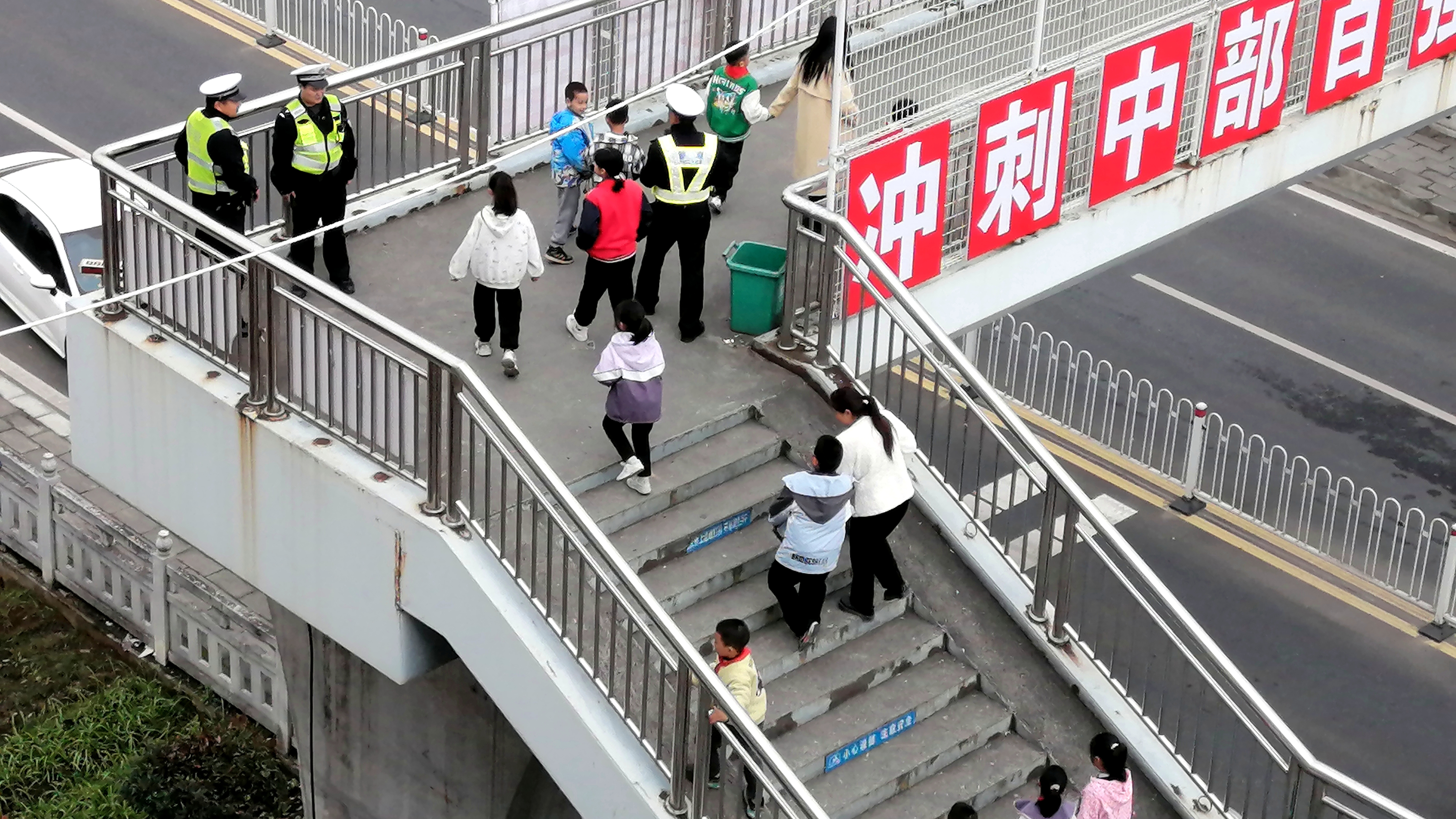上放学时间,学校门前“警察、教师、安保、志愿者”合力“护校安园”