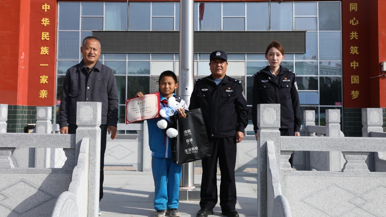 10月29日上午,宁夏彭阳县公安局白阳派出所、政工室民辅警叔叔来到了县第五小学,与学校师生一起为五年级五班杨明队员举办一场特殊的“颁奖典礼”。