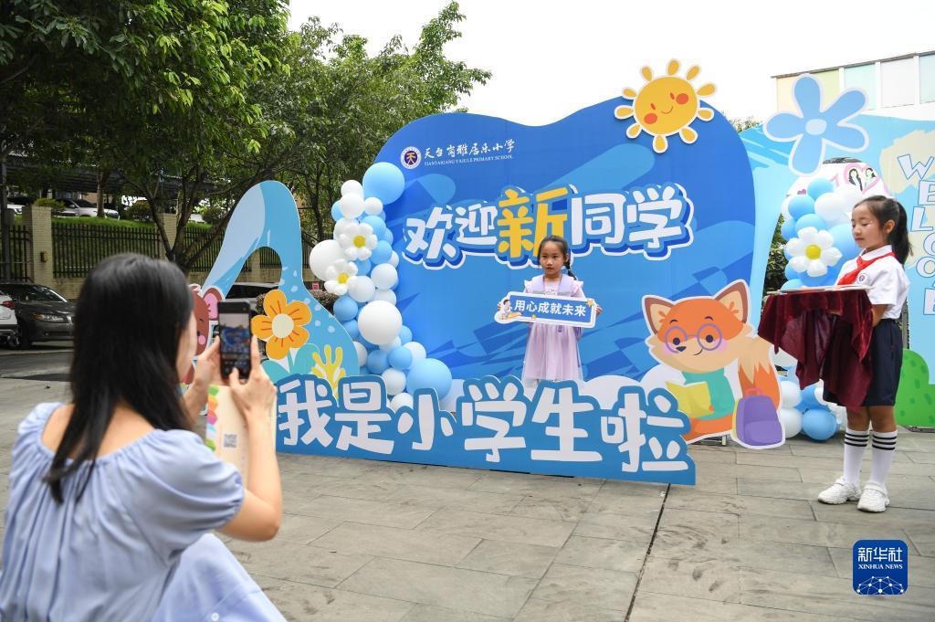 8月30日,重庆市南岸区天台岗雅居乐小学一年级学生来到学校报到。