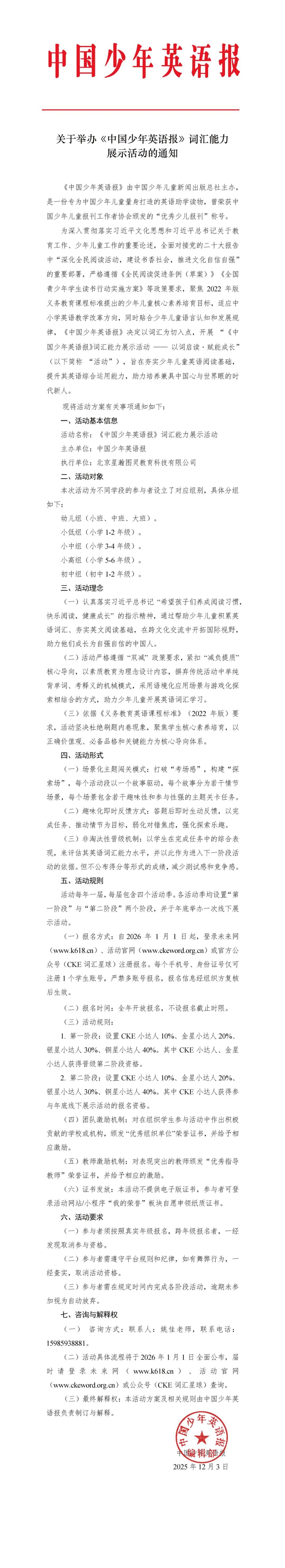 “以词为媒 赋能成长”——《中国少年英语报》词汇能力展示活动启动