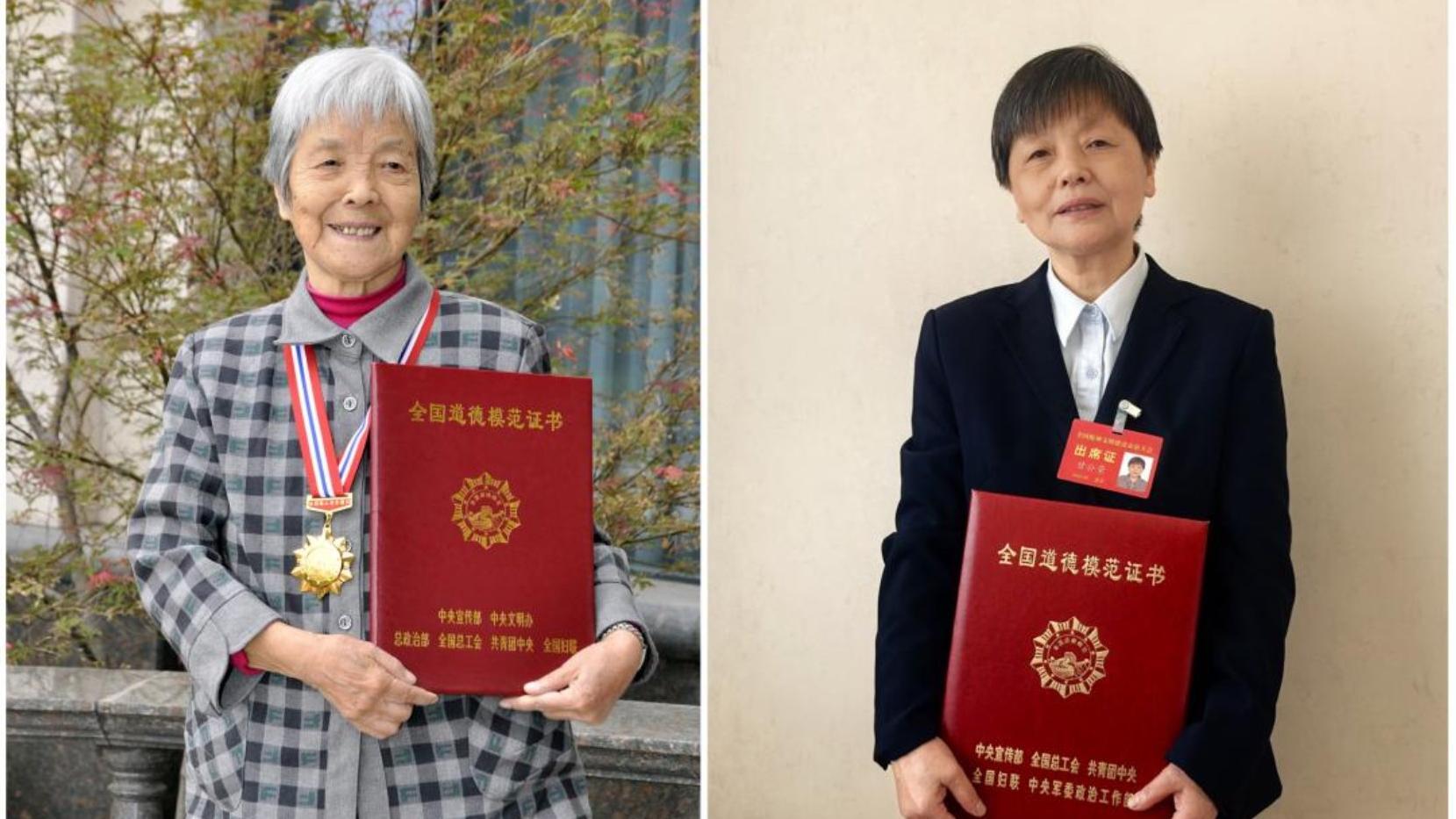 (图为甘公荣的母亲龚全珍当选第四届“全国道德模范”第甘公荣当选第九届“全国道德模范”两枚熠熠生辉的奖章跨越时空交相辉映)
