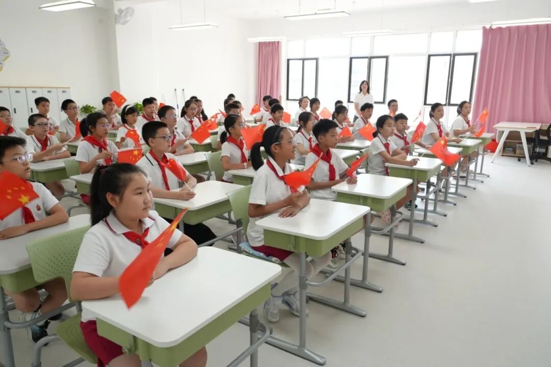 阅兵式上,一个个方队整齐划一,战士们精神抖擞,每一个眼神都透着坚定。更让我惊叹的是那些先进的装备,从信息化的战车到威武的战机,每一样都彰显着新时代中国的强军力量。当荣誉战旗方队走过时,老师告诉我们,每一面战旗背后都藏着一段英雄故事,那是我们祖国不能忘记的历史。