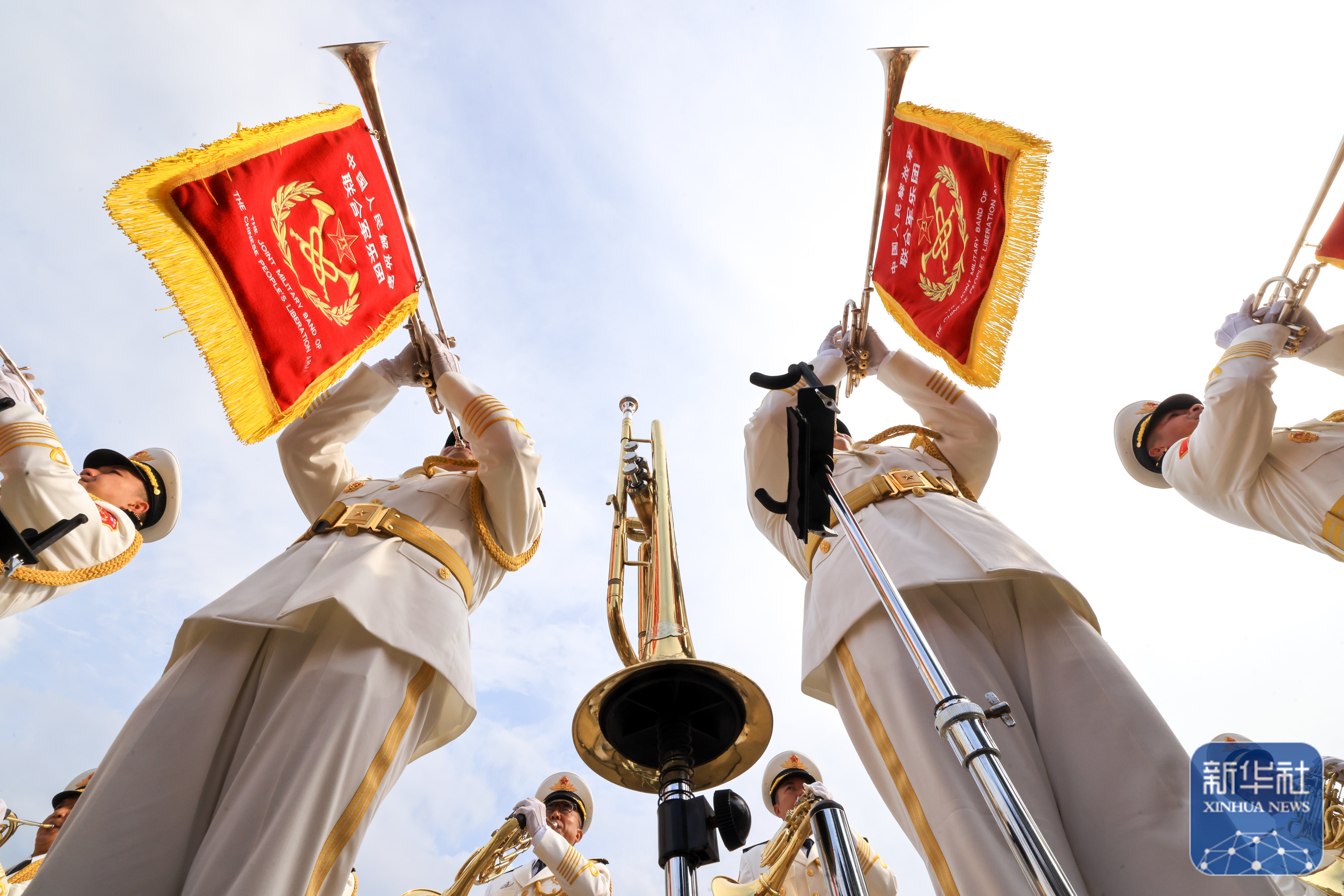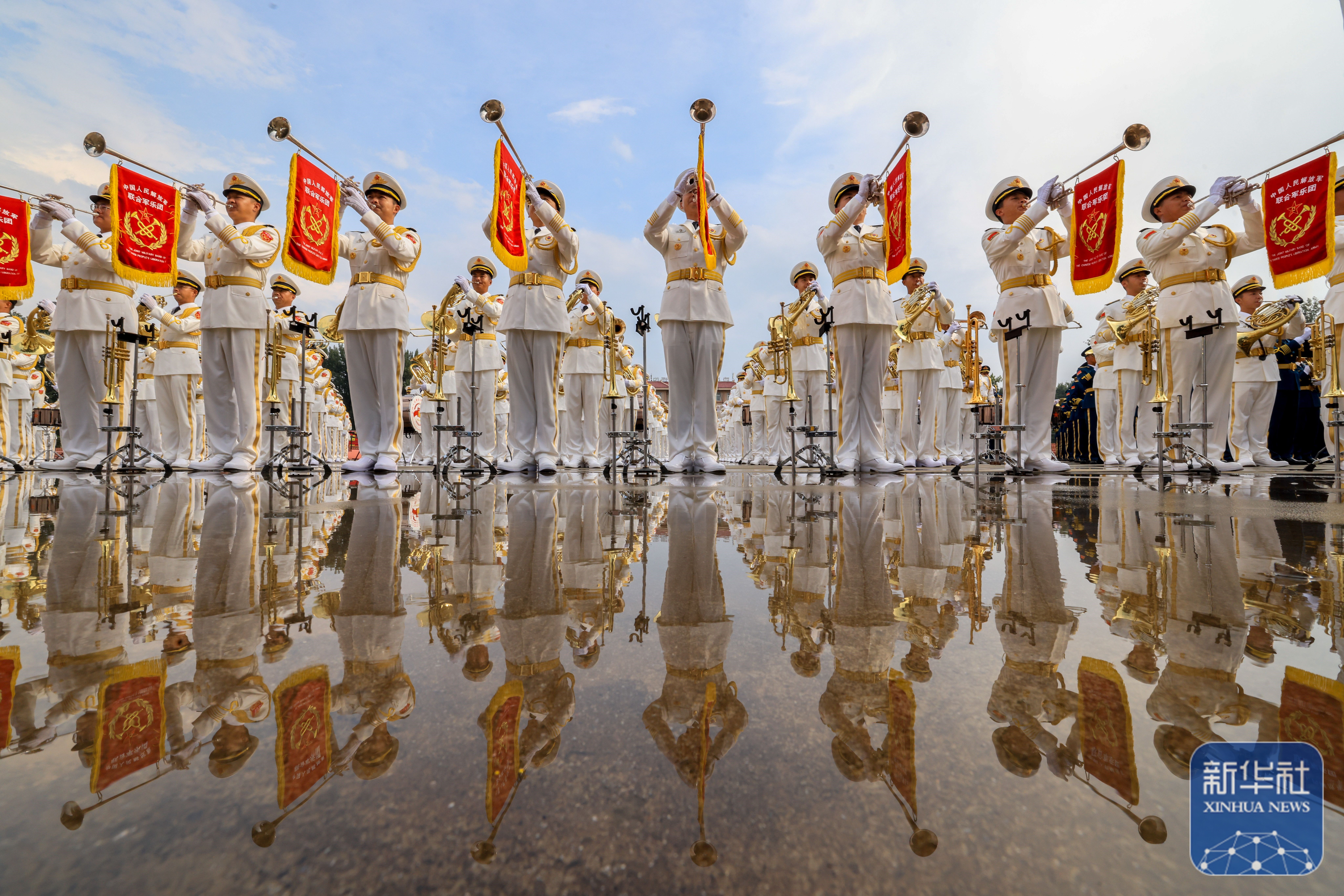↑ 中国人民解放军联合军乐团在进行训练(8月12日摄)。新华社记者 殷刚 摄