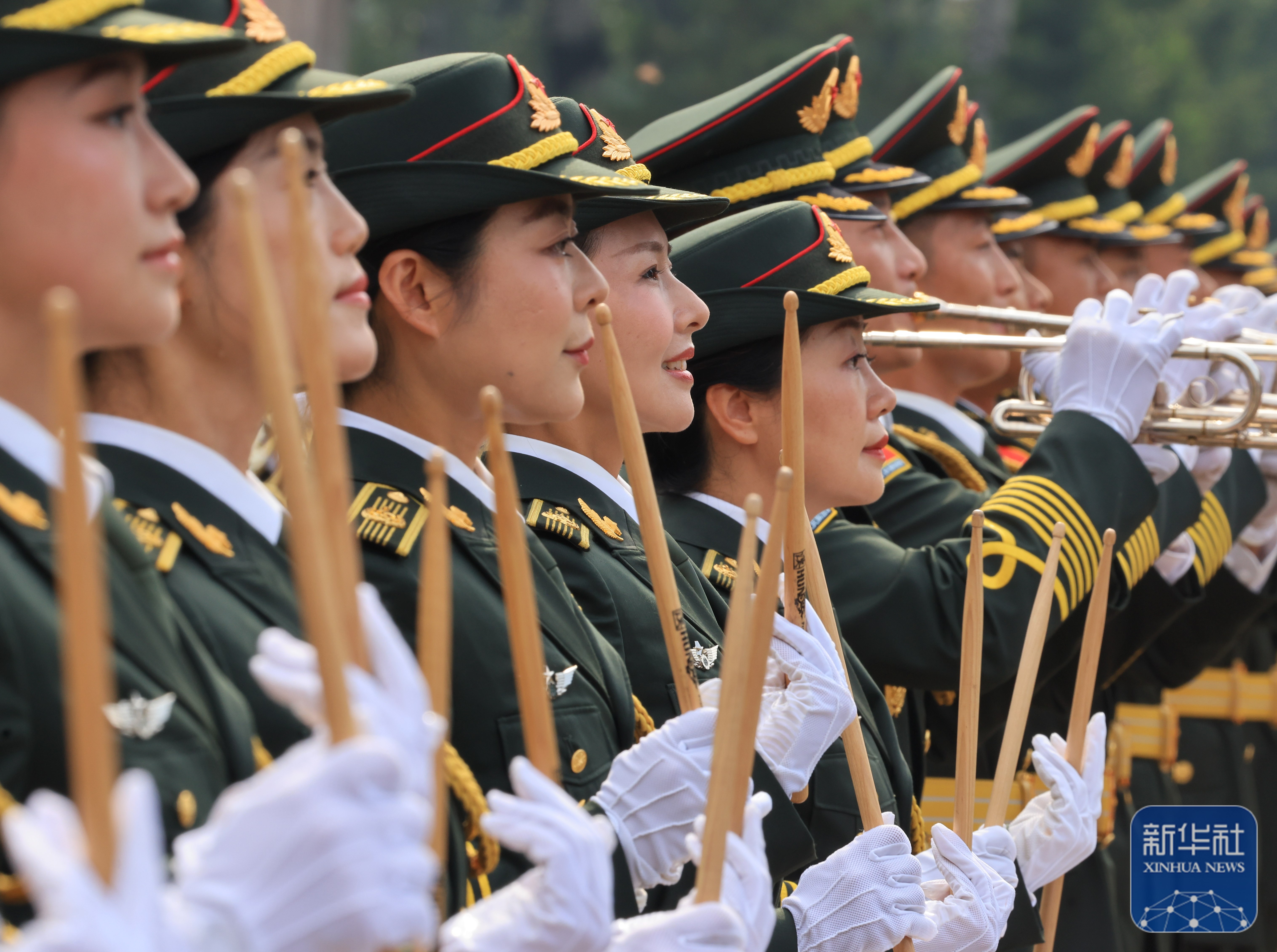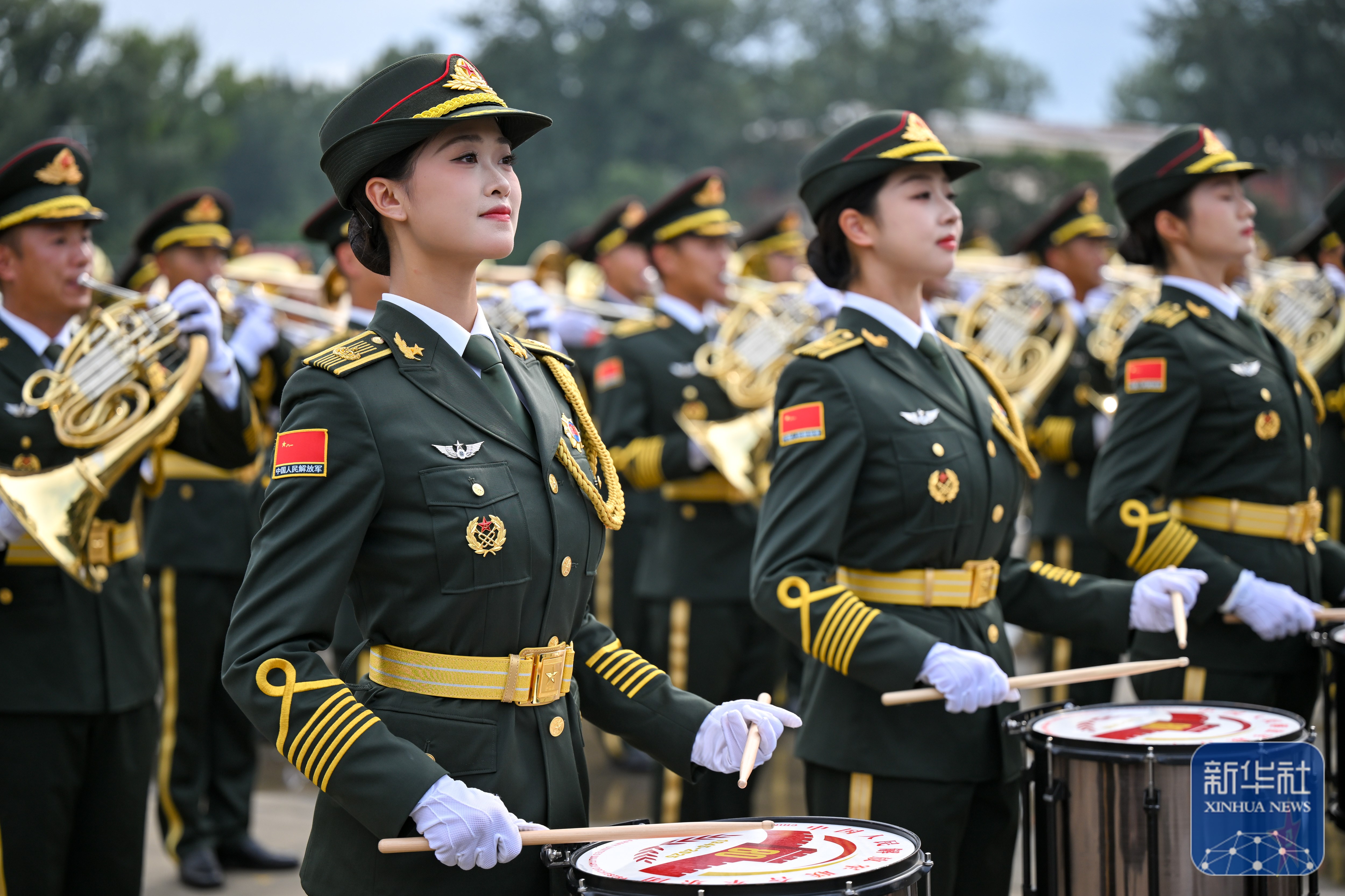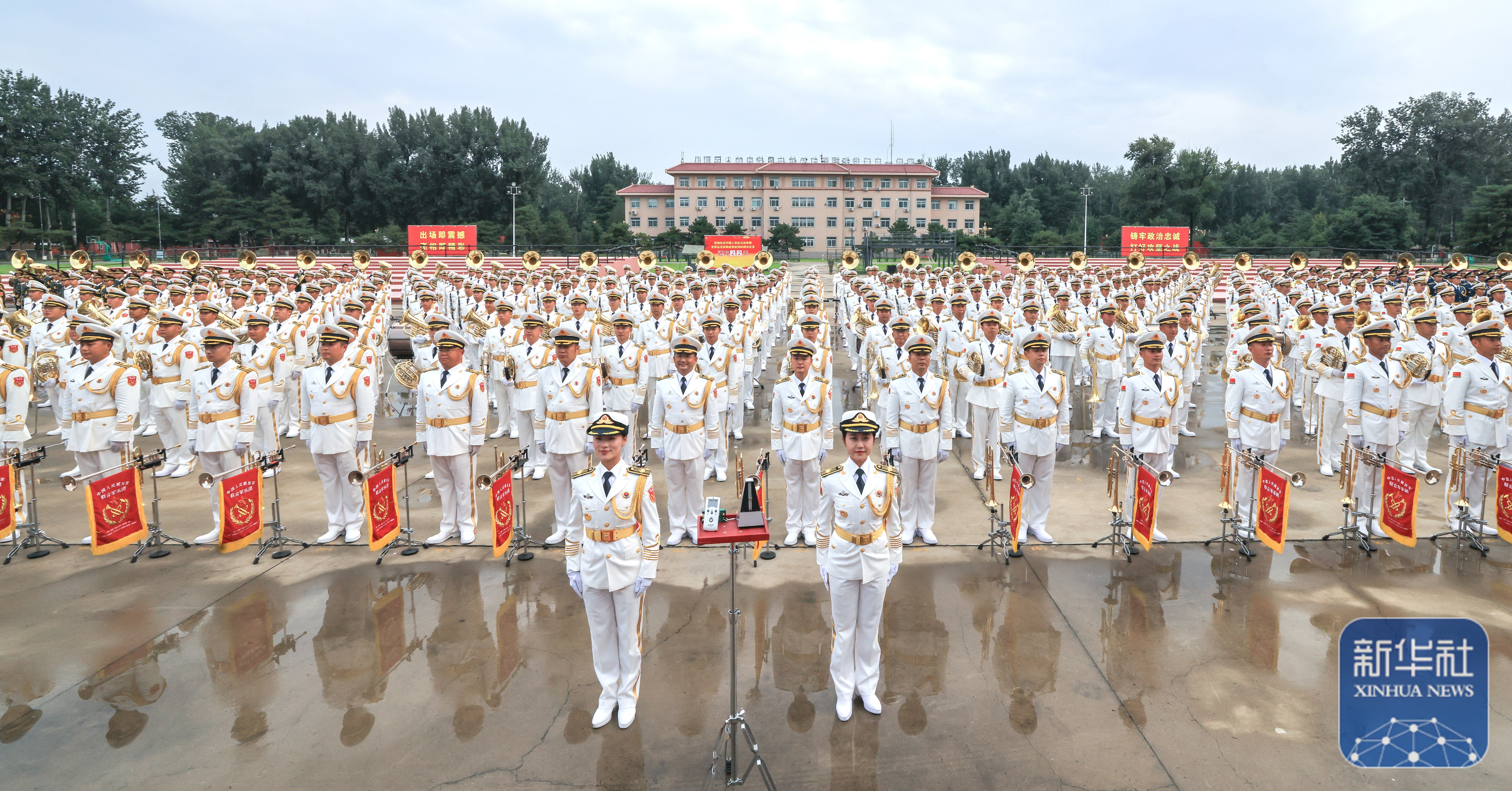 ↑ 中国人民解放军联合军乐团在进行训练(8月12日摄)。新华社记者 张铖 摄