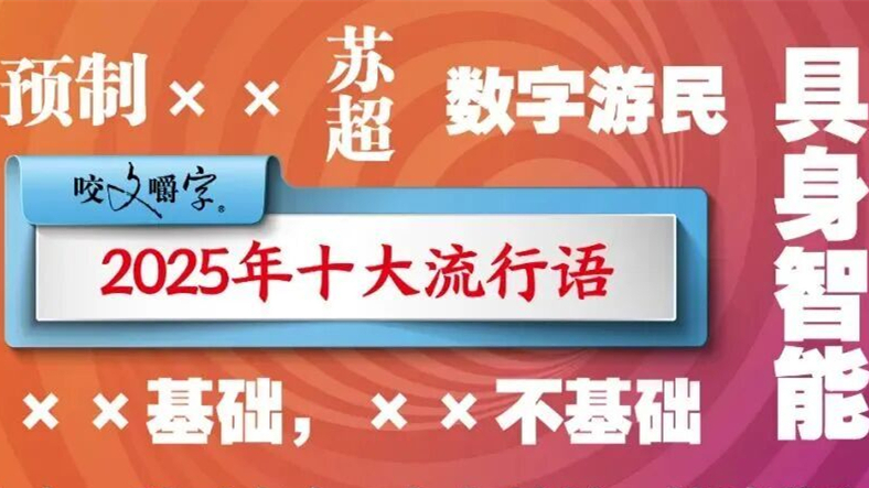 “2025年十大流行语”沿袭一贯的“双标准”原则,即坚持社会学和语言学评选标准。“韧性”位居榜首,“苏超”“赛博对账”也高票入选,这说明这一年度的大事要事、社会热点,都得到了社会的广泛关注。
