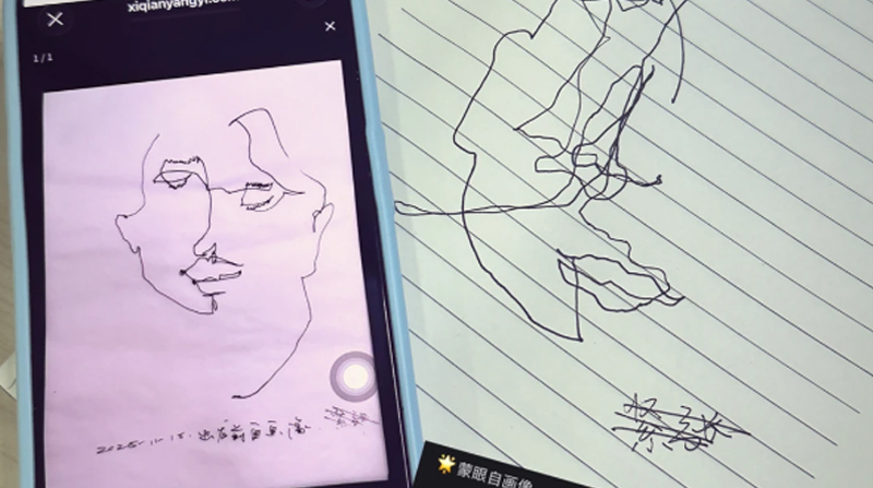 最近网上很流行一种缓解焦虑的方法,叫作“蒙眼自画像”。很多网友尝试后表示,“确实很能缓解压力”。