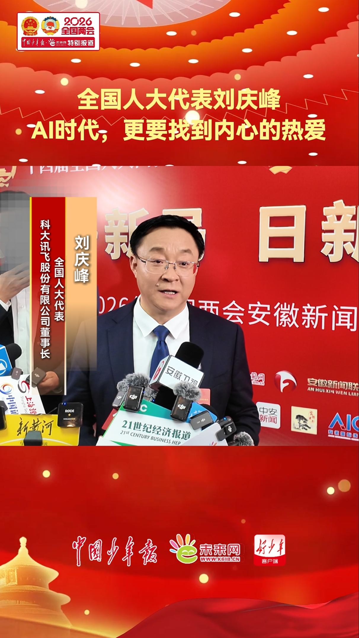 全国人大代表刘庆峰:AI时代更要找到内心的热爱