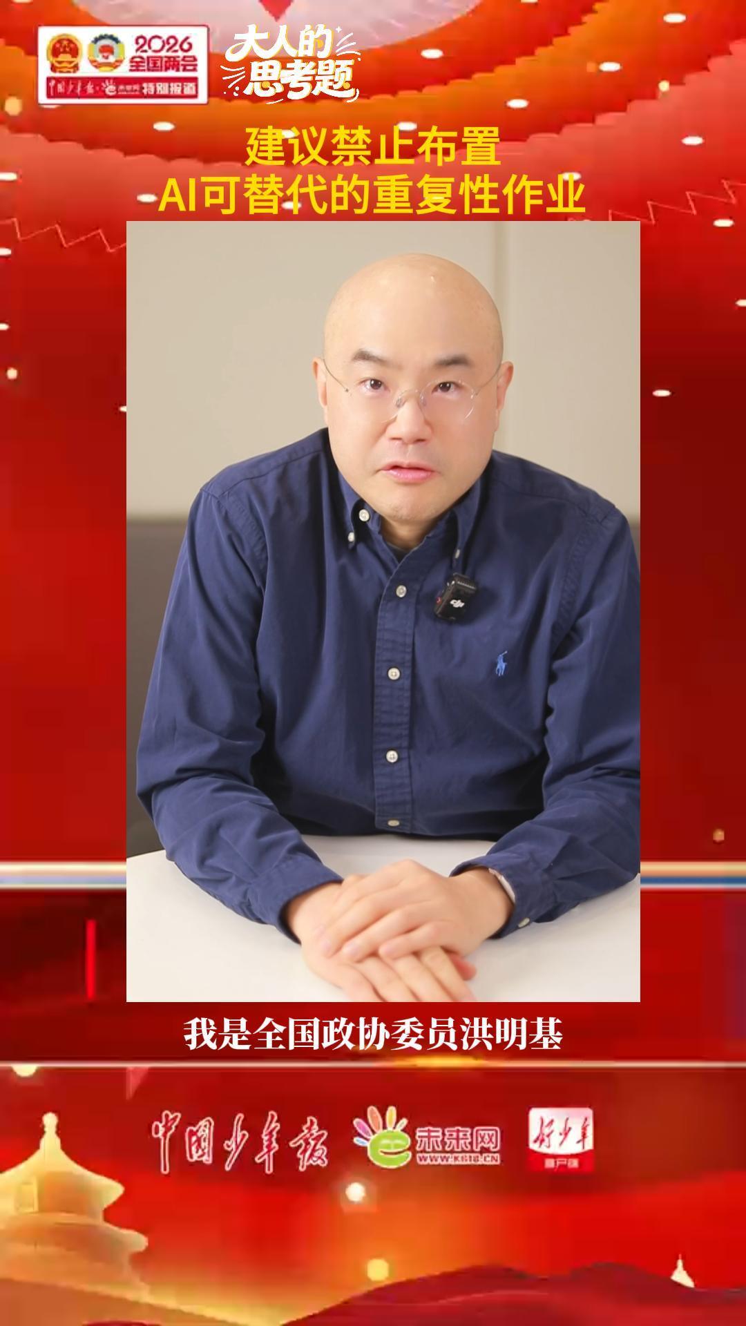 全国政协委员洪明基:建议组织专家研究AI作业题库解放一线教师精力