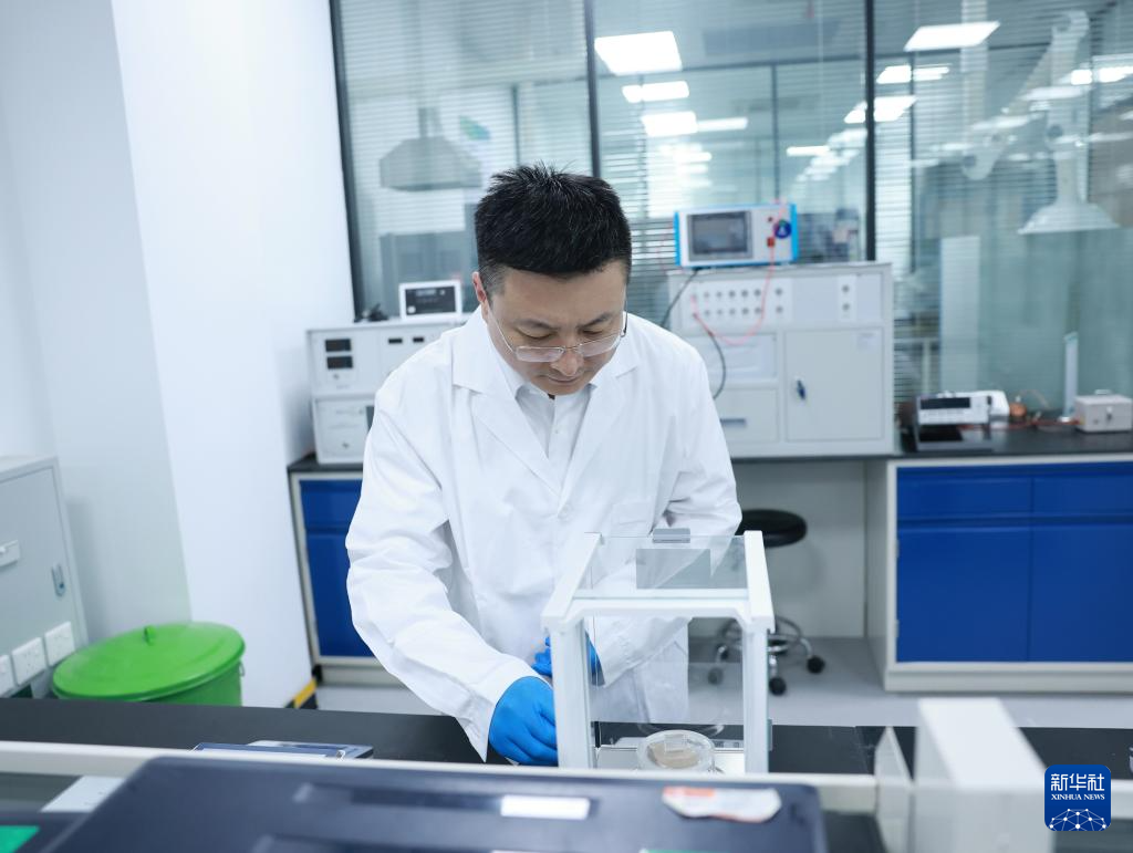 1月27日,在中国电气装备集团上海科研基地,张帆在介绍特高压变压器的关键材料绝缘纸板。绝缘纸板原材料长期被国外巨头垄断。张帆带领团队运用AI技术推进国产化替代,攻克“卡脖子”难题。