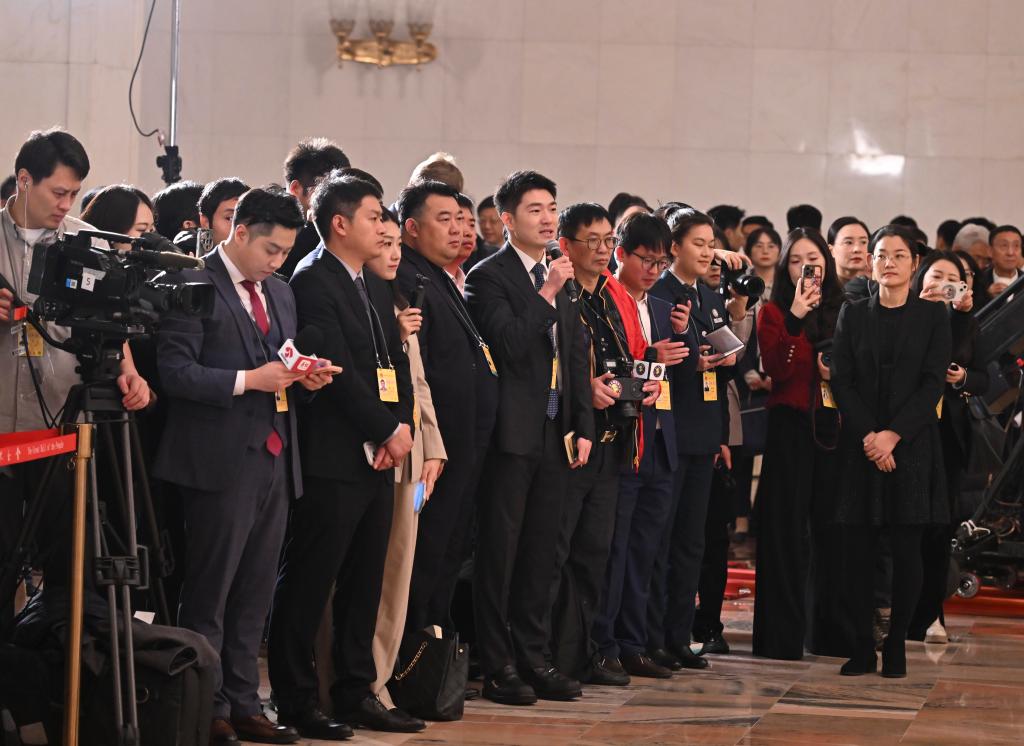 3月5日,第十四届全国人民代表大会第四次会议首场“代表通道”集中采访活动在北京人民大会堂举行。新华社记者 李鑫 摄