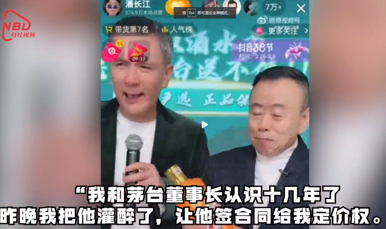 “我和茅台公司董事长认识十几年了,昨晚我把他灌醉了,让他签合同给我定价权”“这款茅台虎年生肖酒,酒厂肯定要亏钱的,市场价一直4万多(一箱),我2万多就卖。”据《每日经济新闻》报道,在今年三月初的一场直播带货中,知名演员潘长江这样说。