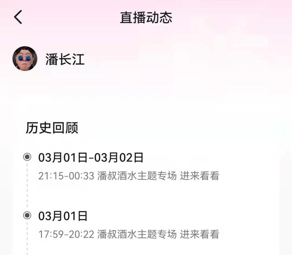 未来网记者获悉,潘长江此次进行直播的平台是抖音短视频平台(北京微播视界科技有限公司旗下平台)。记者在该平台查看了认证为演员、导演的“潘长江”抖音号后了解到,该抖音号在3月1日进行了多场直播,直播主题为“潘叔酒水主题专场”。