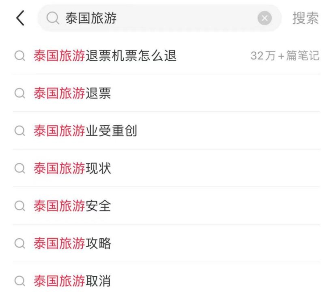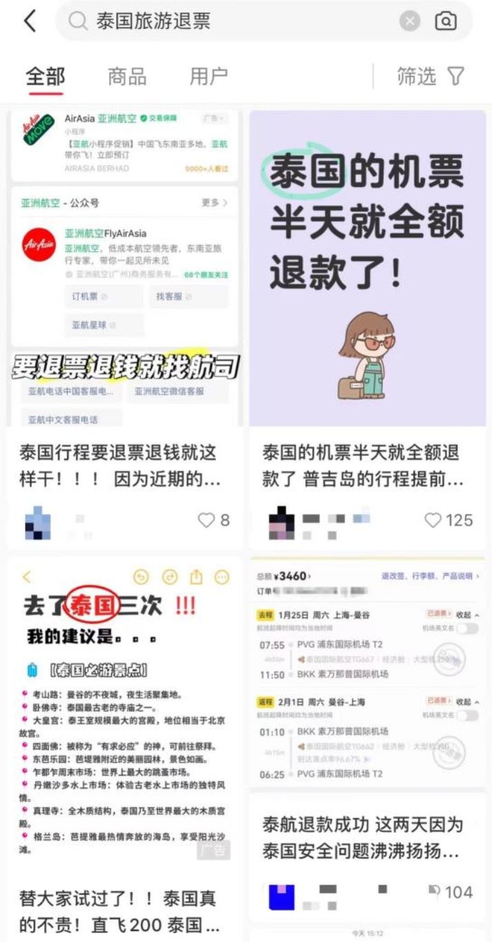记者检索发现,截至发稿前,已有大量网友在社交平台发布“春节泰国游退票”相关内容,并表达了对赴泰旅游的担忧,还有网友发帖质疑机票、酒店不予全额退款等。其中,某社交平台有关“泰国旅游机票怎么退”的相关话题,已有高达32万条内容。