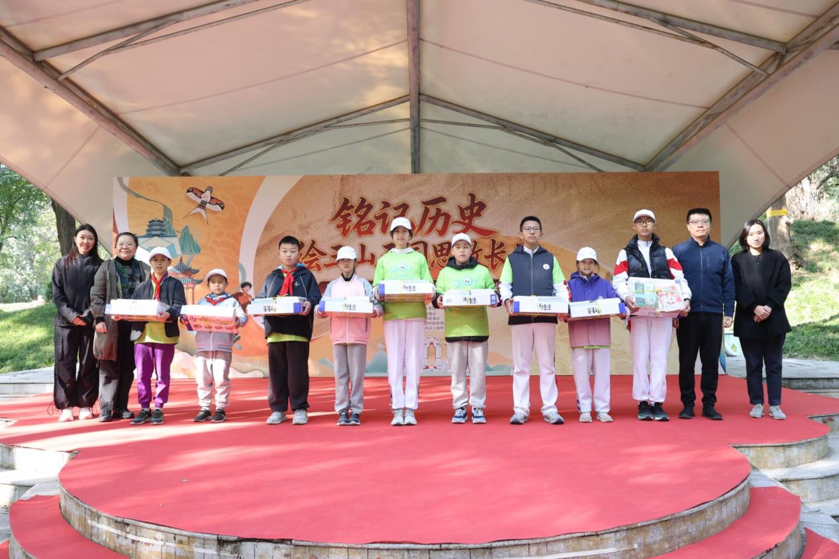 此次活动中,多项表彰与赠书环节进一步传递教育温度。北京市海淀区委宣传部副部长李朝阳为王娟老师颁发“思政教育工作者”证书;随后,李朝阳与共青团海淀区委副书记李涛、海淀街道文教科科长齐跃、圆明园博物馆庞晓寒馆长共同为少先队员代表赠送“三山五园”主题书籍。