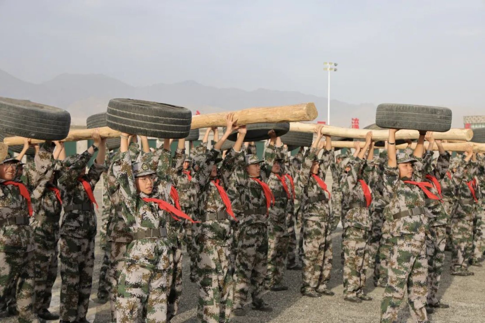 10月2日,“争当新时代好少年 红领巾请祖国检阅”国防教育训练营开展举圆木、举轮胎特色训练。