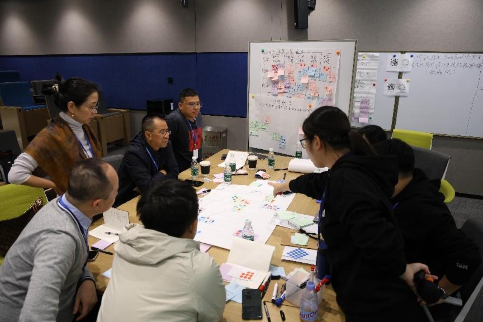 据培训教师介绍,工作坊遵循“同理心洞察—问题定义—创意发散—原型构建”的设计思维流程。在IBM战略咨询师的引导下,各院校师生团队首先走进课堂、清晰描绘学生画像,深入观察高职学生在AI认知、工具应用与具体实践中的真实困境,精准捕捉“学生觉得AI遥远抽象”“学生渴望实战机会”等痛点,在IBM导师带领下,老师们将碎片灵感转化为完整的活动方案。