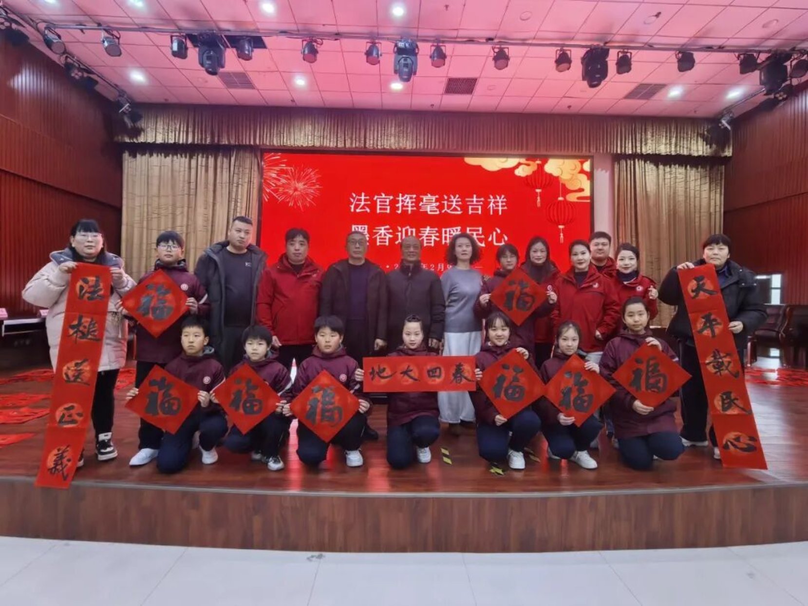 作为汝南法院文化建院、以文润法的生动实践,此次活动将法治内涵巧妙融入新春祝福,让司法温度与文化温情相互交融。活动现场创作的春联和“福”字,不仅饱含着新春的美好祝愿,更传递着法治力量。随后,汝师附小的师生们将这些承载着温情与祝福的作品传递到群众手中,用实际行动践行服务社区、回馈社会的责任担当。