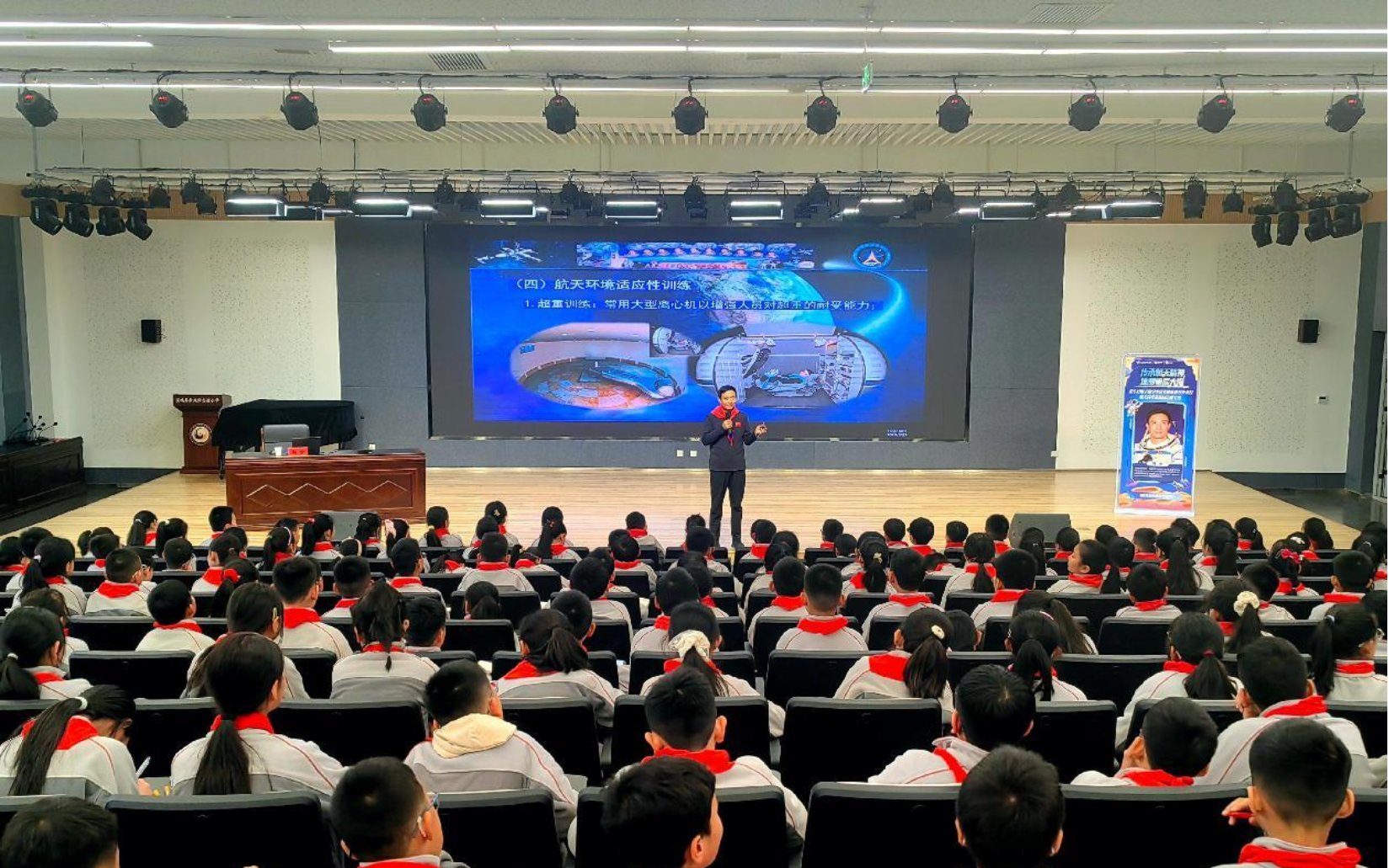 讲座中,他从航天员的选拔标准讲起,分享了自己在训练中的亲身体验,讲述了航天员在太空中执行任务时的感人故事。