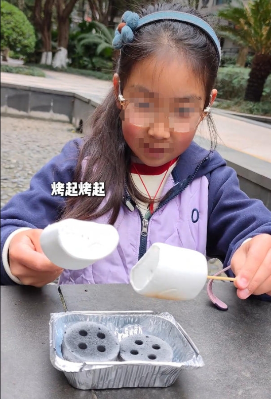 未成年人用机制炭烤棉花糖(网络视频平台截图)