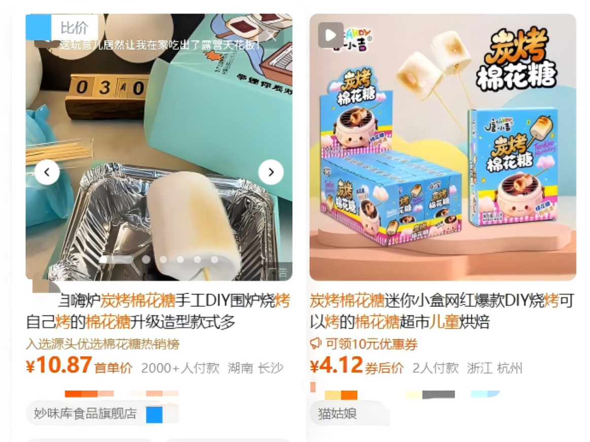 电商平台商家将炭烤棉花糖关键词设置为“儿童烘焙”