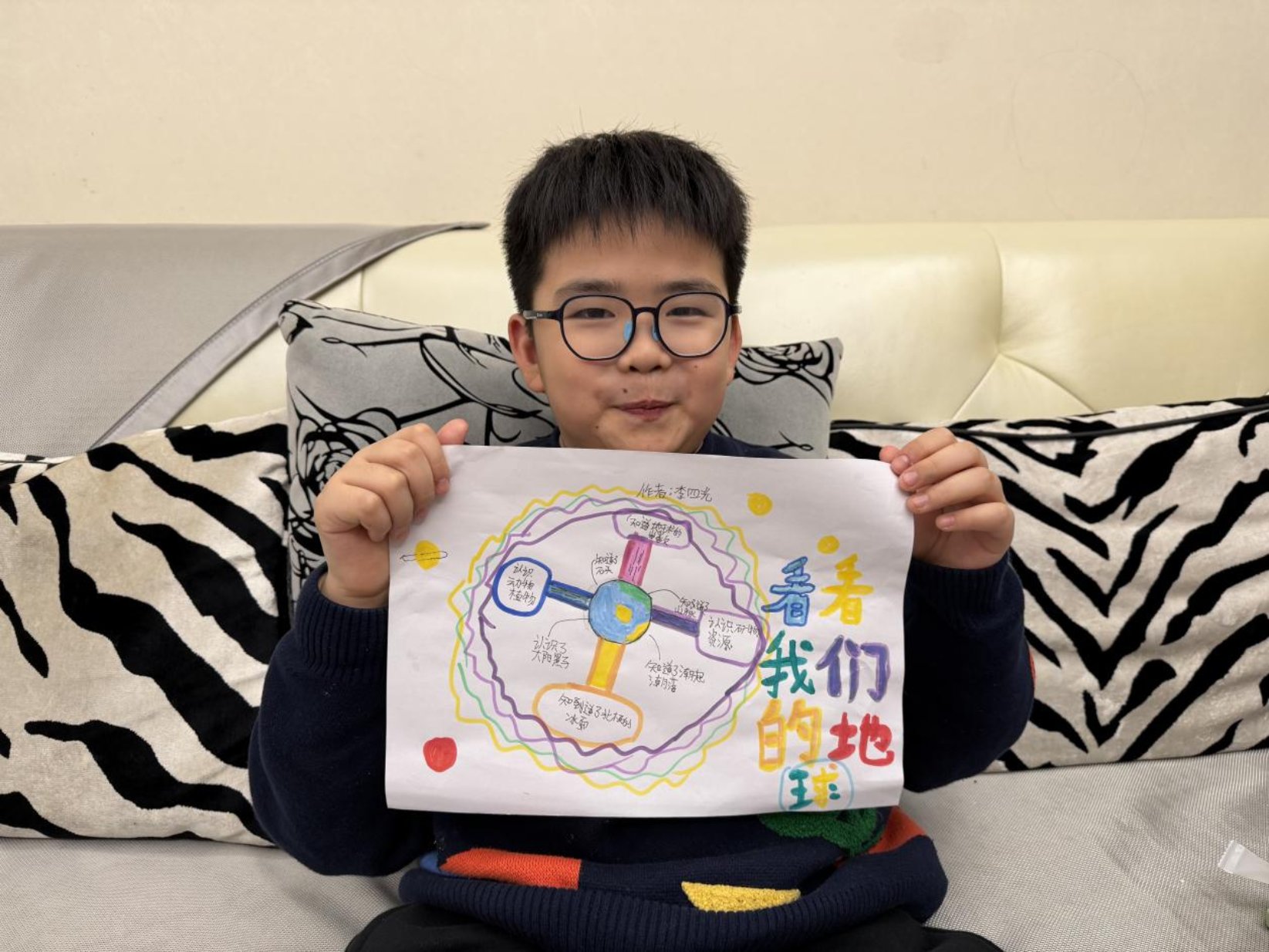 浙江省杭州市萧山区南都小学学生李四光展示自己做的阅读思维导图(受访者供图)