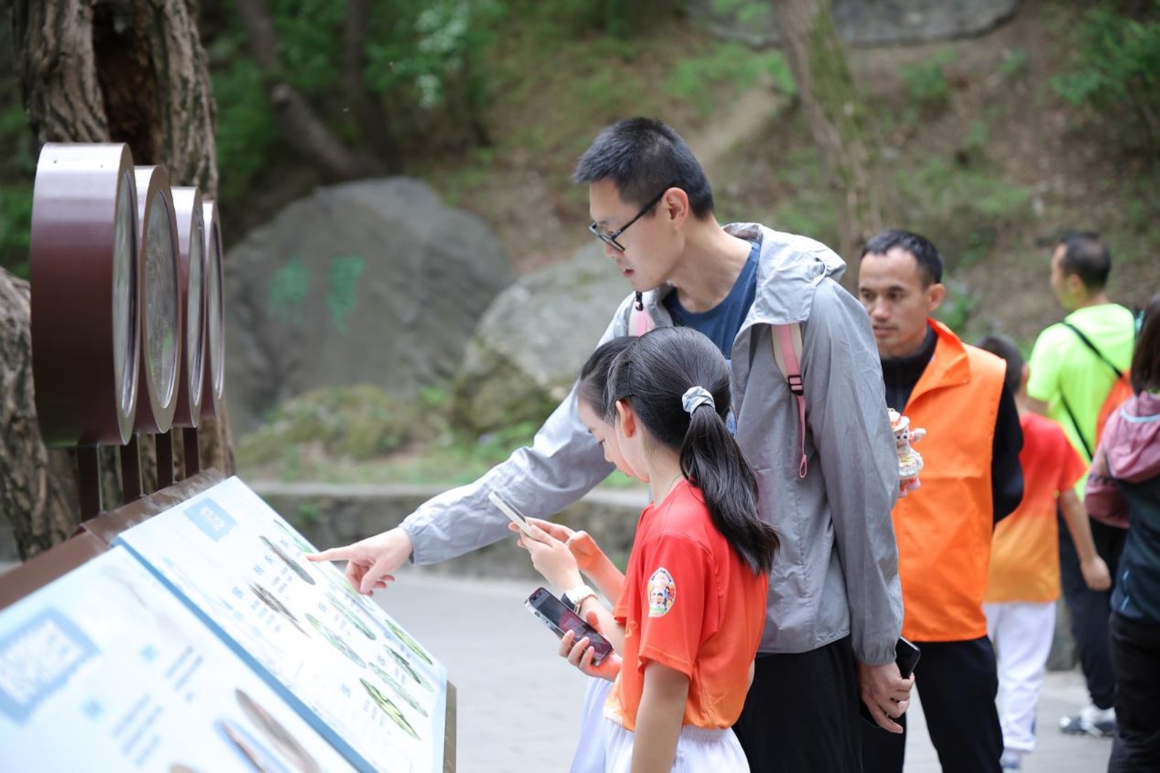 孩子们在打卡点认真查看知识问答/主办方供图