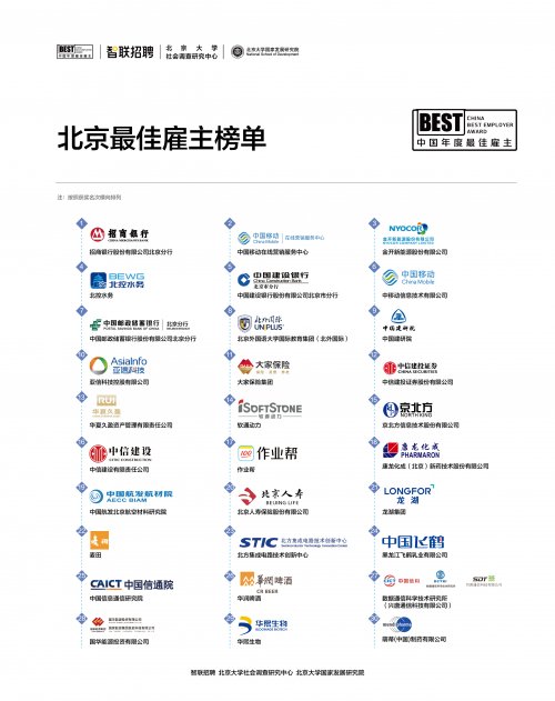 中国年度最佳雇主评选活动由智联招聘联合北京大学社会调查研究中心、北京大学国家发展研究院等多家专业机构共同发起和组织评审。评选活动始终以独立客观的立场,从多元化维度对企业进行评估审视,发现企业管理和人力资源管理的行业趋势,洞察求职者的需求变化,为企业制定雇主品牌战略提供数据支持。本活动作为中国人力资源领域的权威指南与风向标,不仅为求职者提供了寻找“优秀雇主”和“理想工作”的重要参考,同时也是雇主与雇员之间增进理解、实现共赢的桥梁。人是生产力中最活跃的因素,也是最具有决定性的力量,在新质生产力的发展进程中,最佳雇主评选活动将持续发挥重要作用,挖掘好雇主,助力职场人找到理想职场,让人才创新活力充分迸发。