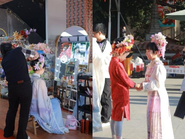 全国各地的游客来到蟳埔镇体验非遗服饰