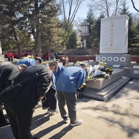 仪式结束后,全体人员依次瞻仰烈士墓。在瞻仰过程中,公司员工与社区人员专程来到毛泽民烈士墓前,肃立默哀,深深三鞠躬,并依次敬献鲜花,深切缅怀这位为新疆革命事业作出卓越贡献的无产阶级革命家。