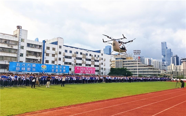 作为国内低空经济标杆企业,鹏城低空此次进校园创下多项先河。多台载人级eVTOL同时亮相中学科技节,校长亲驾飞行器在校园演示开展科普,均为国内校园科创科普活动创举。企业依托全产业链服务能力,整合智航、英武、小鹏汇天、亿航等头部资源,将产业尖端成果转化为科普教材,以产教融合的方式,为青少年搭建通往未来的航空桥梁。
