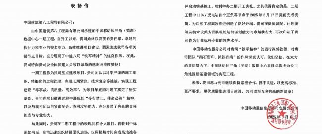近日,由中建八局总承包公司承建的中国移动长三角(芜湖)数据中心二期项目顺利通过竣工验收。项目作为国家“东数西算”战略布局的重要节点,全面转入试运行阶段。